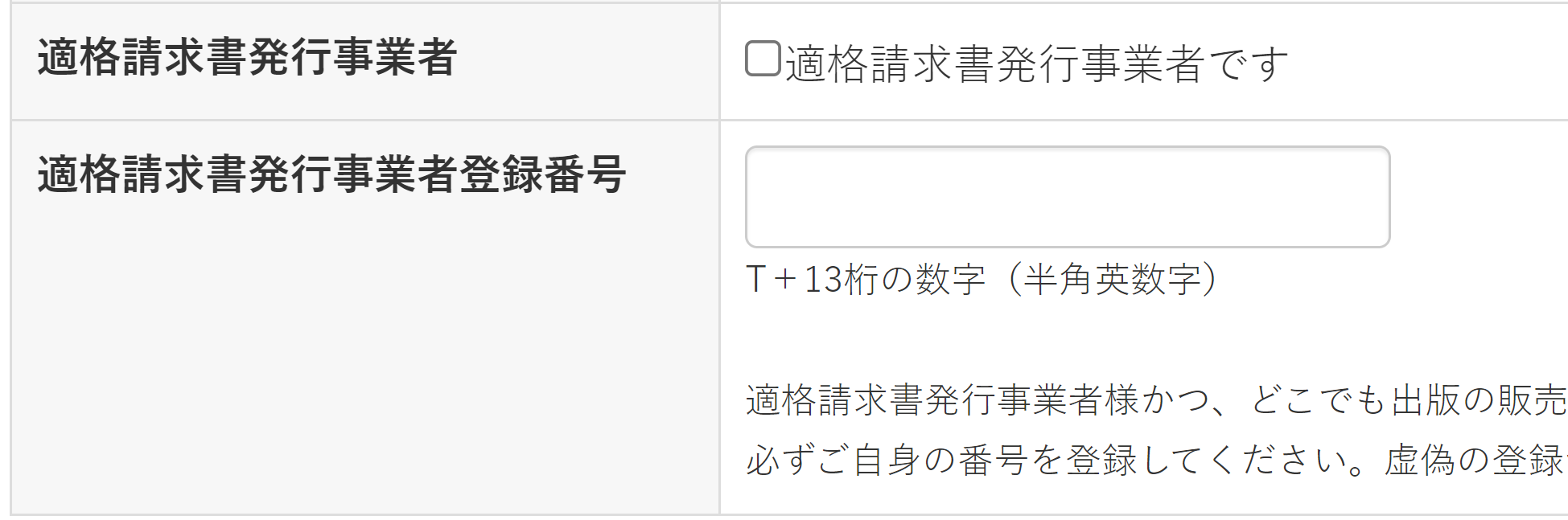 適格請求書発行事業者ではない会員様はマイページの申告の必要はありませんのでチェック及び番号の登録は不要です。