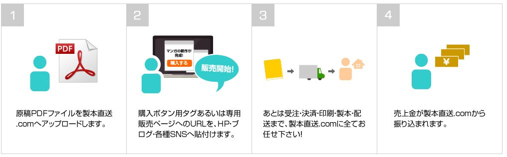 あなたの創作物を販売してみませんか?出版社に依頼する必要もなく、あなたの自慢の創作物を手軽にオンデマンド販売できます。注文の都度、印刷配送しますので、在庫を心配する必要もありません。