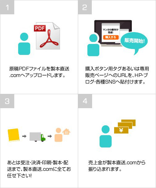 ご購入者様からのご注文受付・決済・印刷・製本・配送まで全ておまかせ下さい。