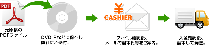 (3)弊社に到着後、ファイルを確認させていただき、問題ないようであれば、メールにて製本代等のご案内をさせていただきます。